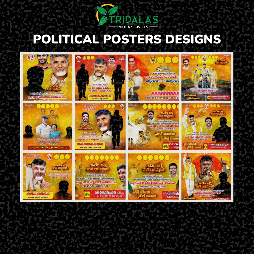 Tridalas Media Services is a Telangana-based political and marketing creative agency specializing in political poster design, flex banner design, campaign branding, social media creatives, and professional video editing services.